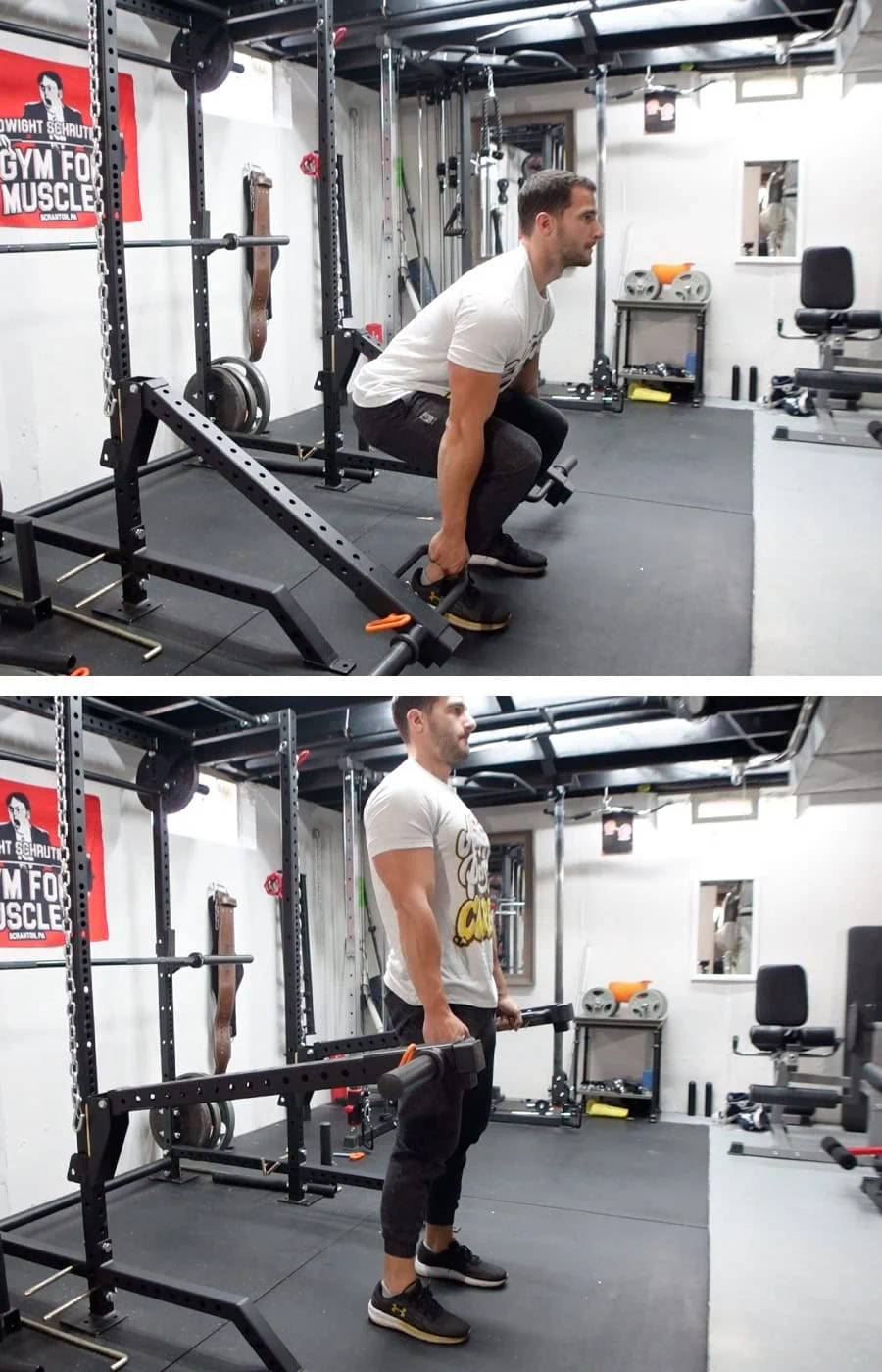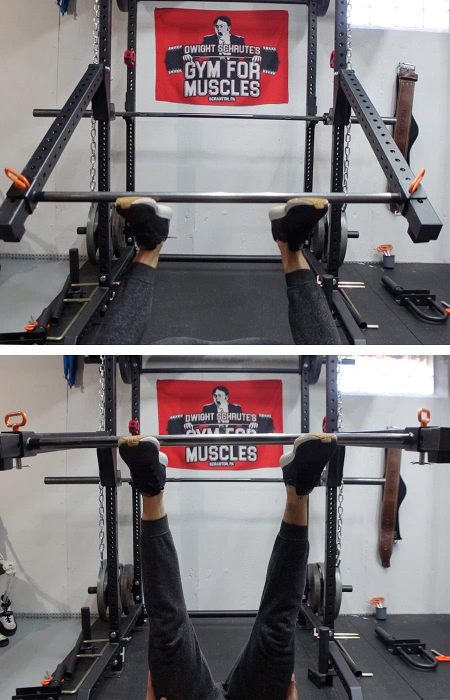 Since I don’t want to push the limits of my rack, I like to keep these lighter with the reps high (for reference, I’ll put 70 pounds on each side). Performing these at the end of your leg day is a great finisher.