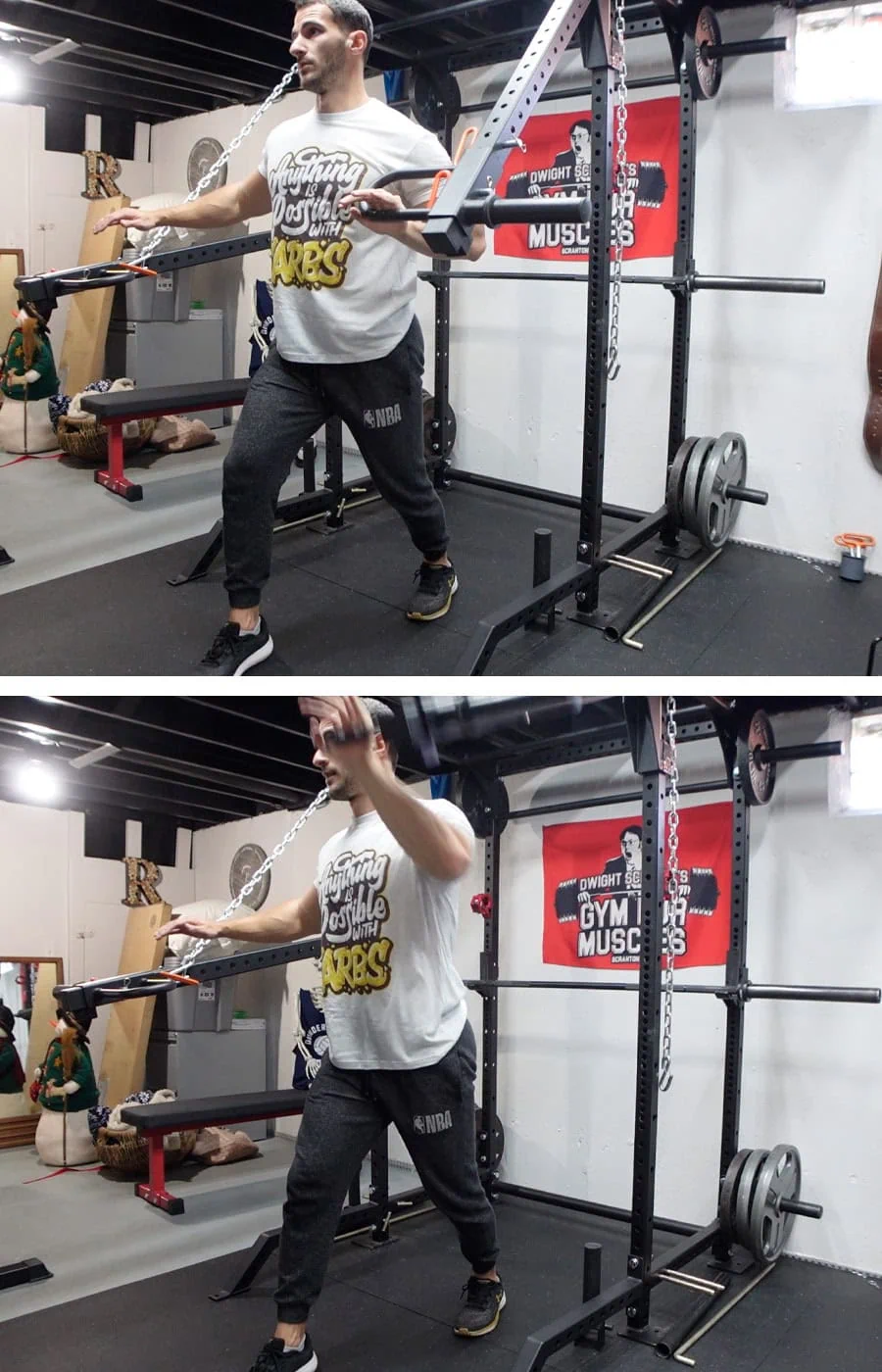 Position the arms using your chains so they are at a comfortable starting position around shoulder height, then press straight up.