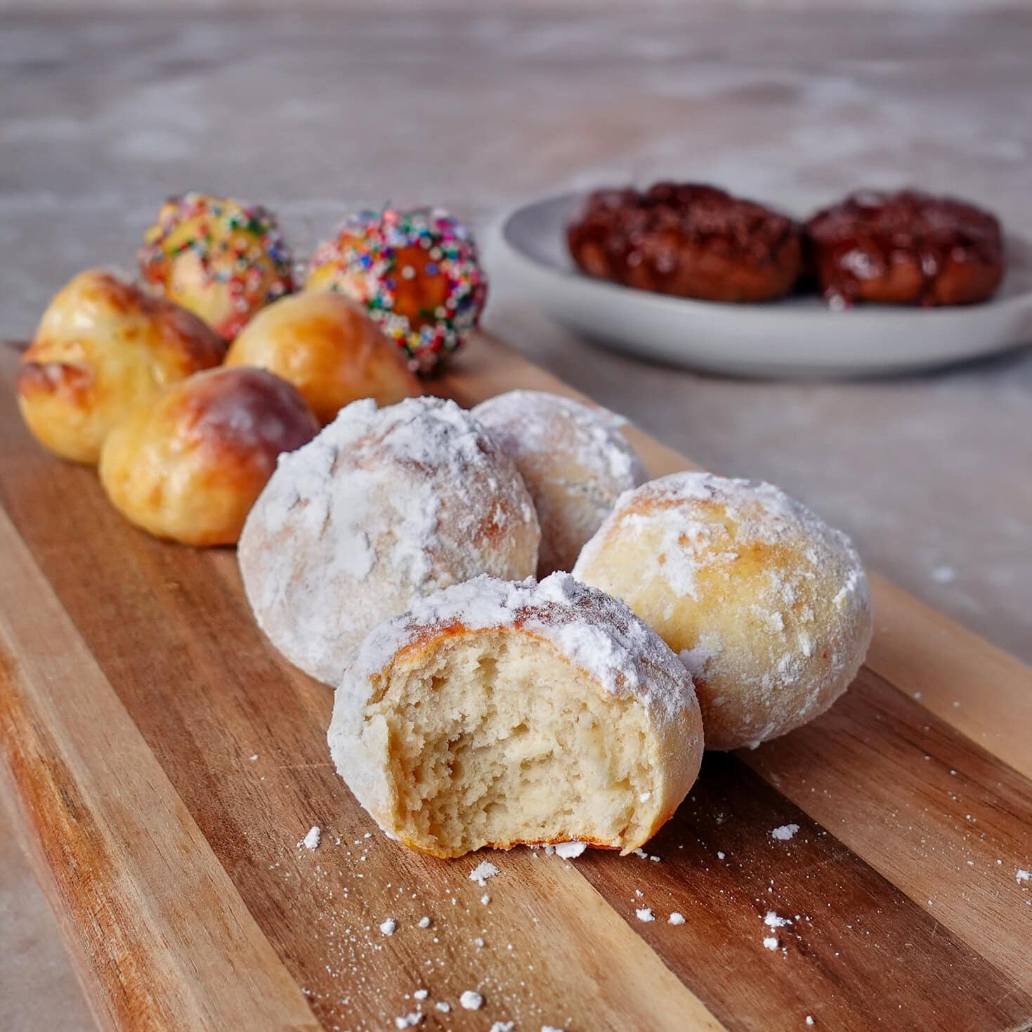 However, these are more delicious with some kind of coating. You can do a simple glaze, cover the donut holes in powdered sugar, or use sprinkles.