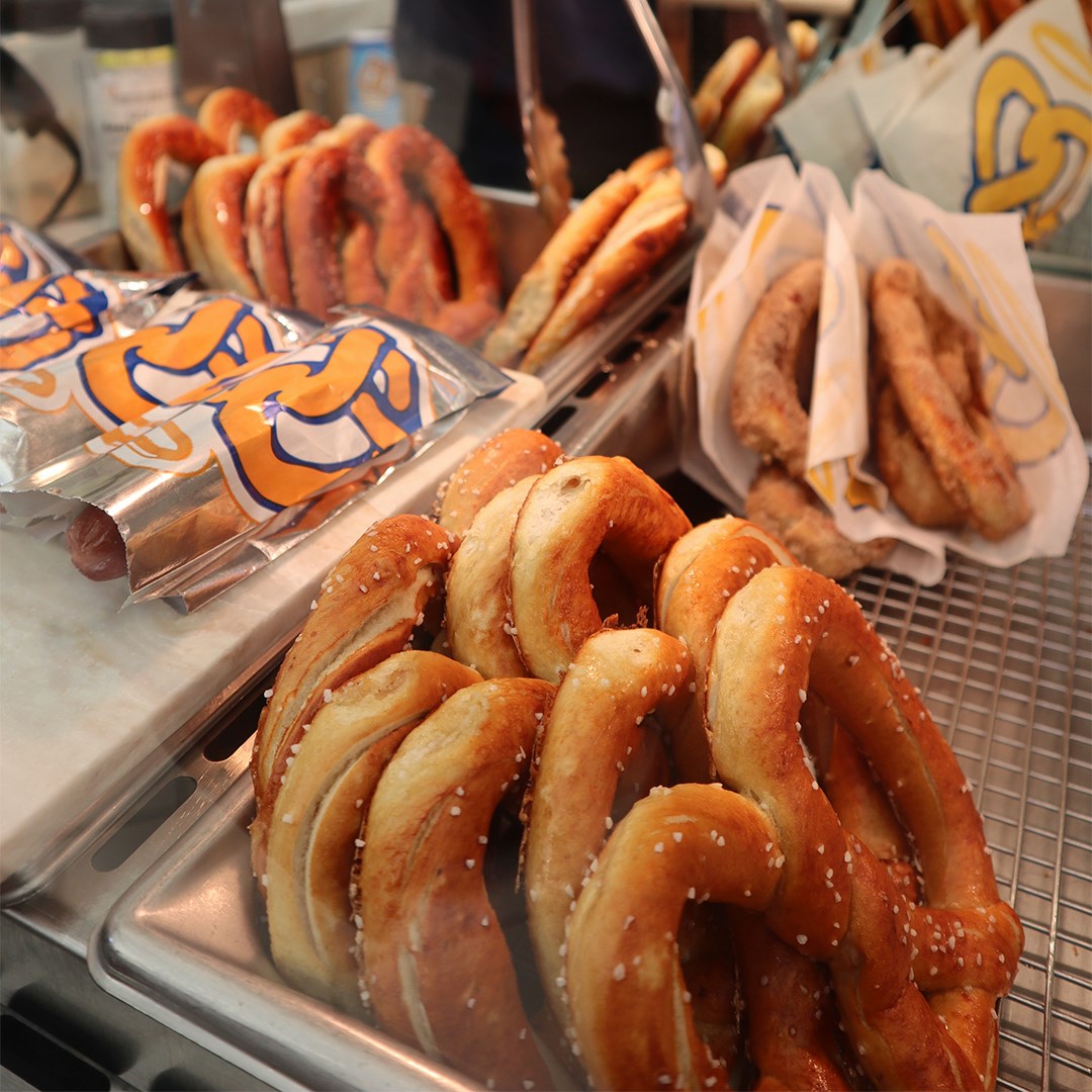 Auntie Anne’s offers a wide variety of options, from their original salted pretzel, to a pepperoni pizza pretzel, to a cheesy pretzel dog. Whether you’re stopping by for a quick snack or a more substantial lunch option, there are great options to choose from.