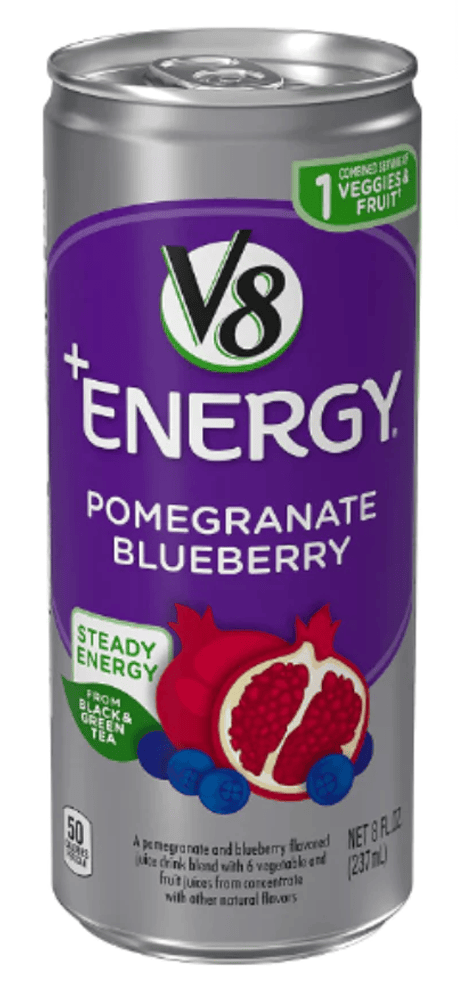 - V8 is certainly a unique name to make the list here, and each 8oz can contains a full serving of fruits & vegetables.