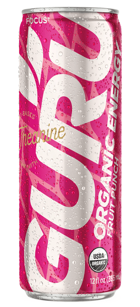 - This “energy drink with benefits” also contains L-theanine and Biotin.