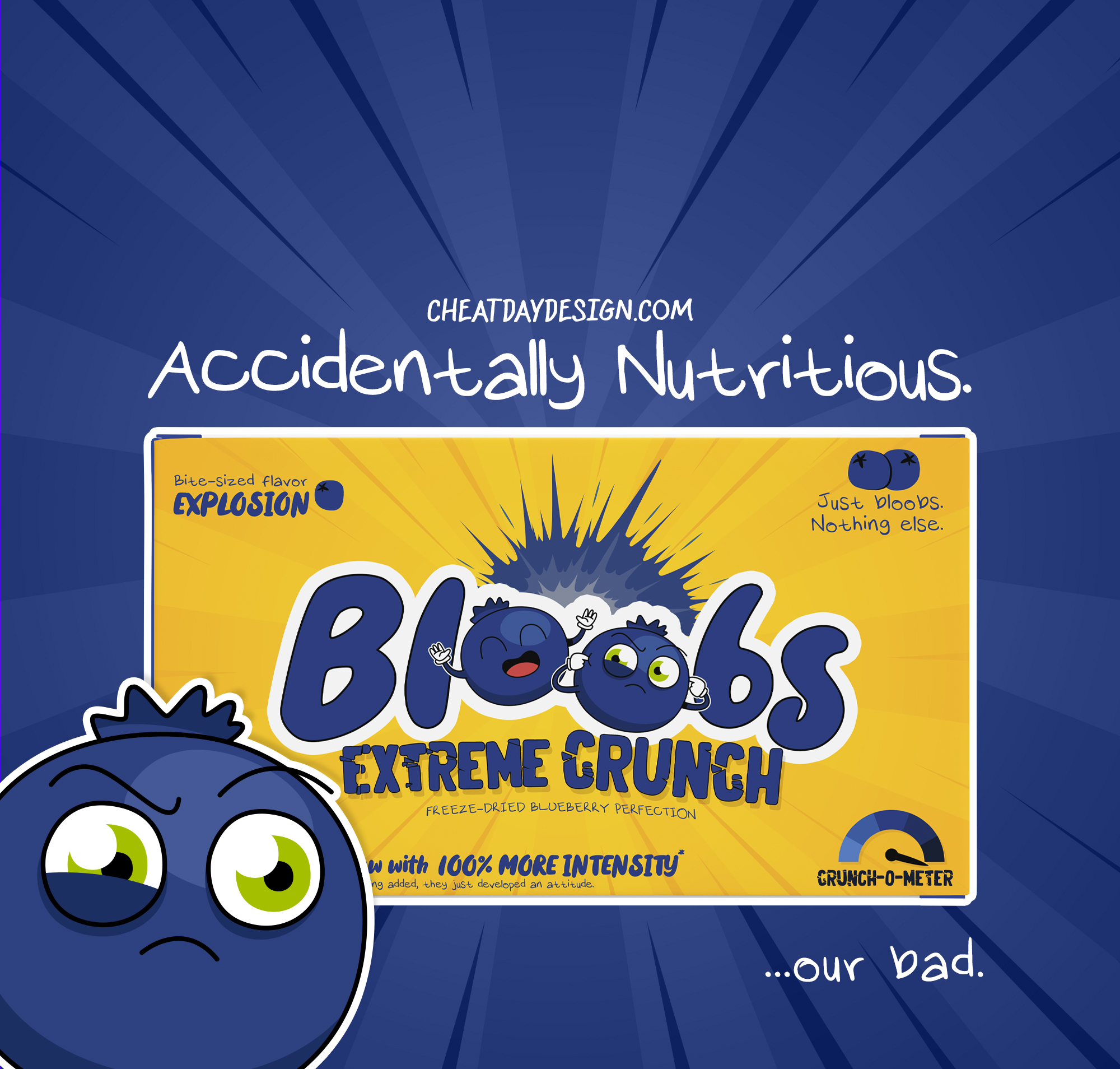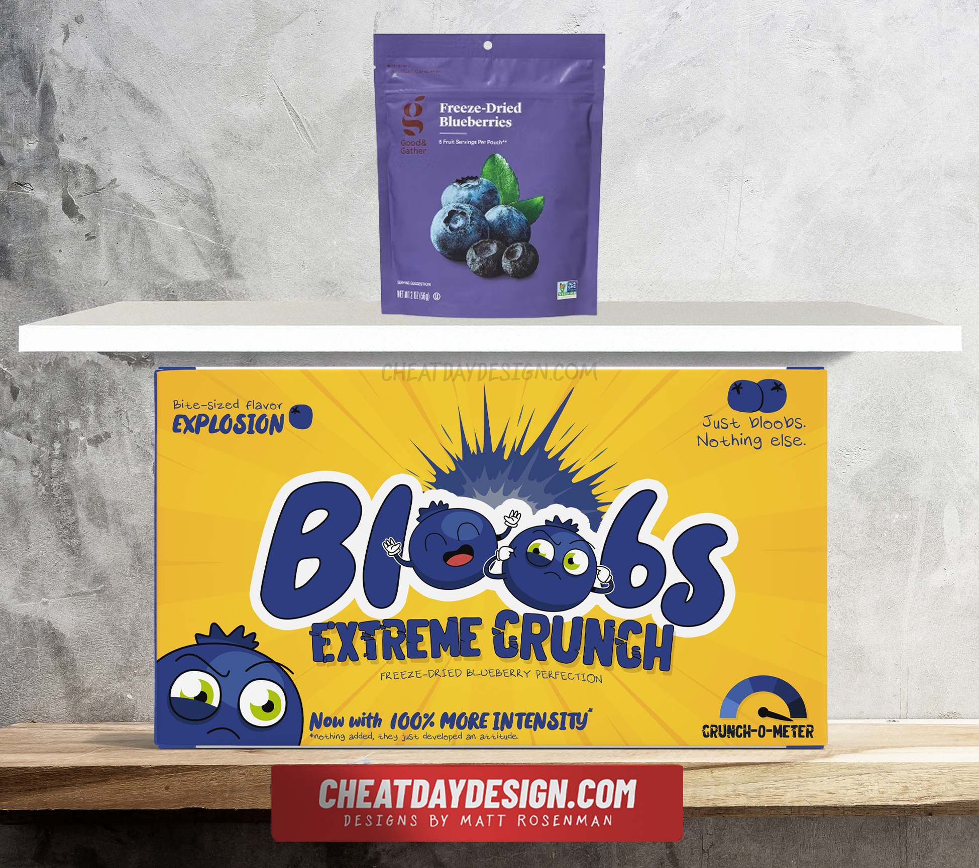 For this one, I decided to rebrand freeze-dried blueberries, because you’re not going to find farm-fresh blueberries on shelves.