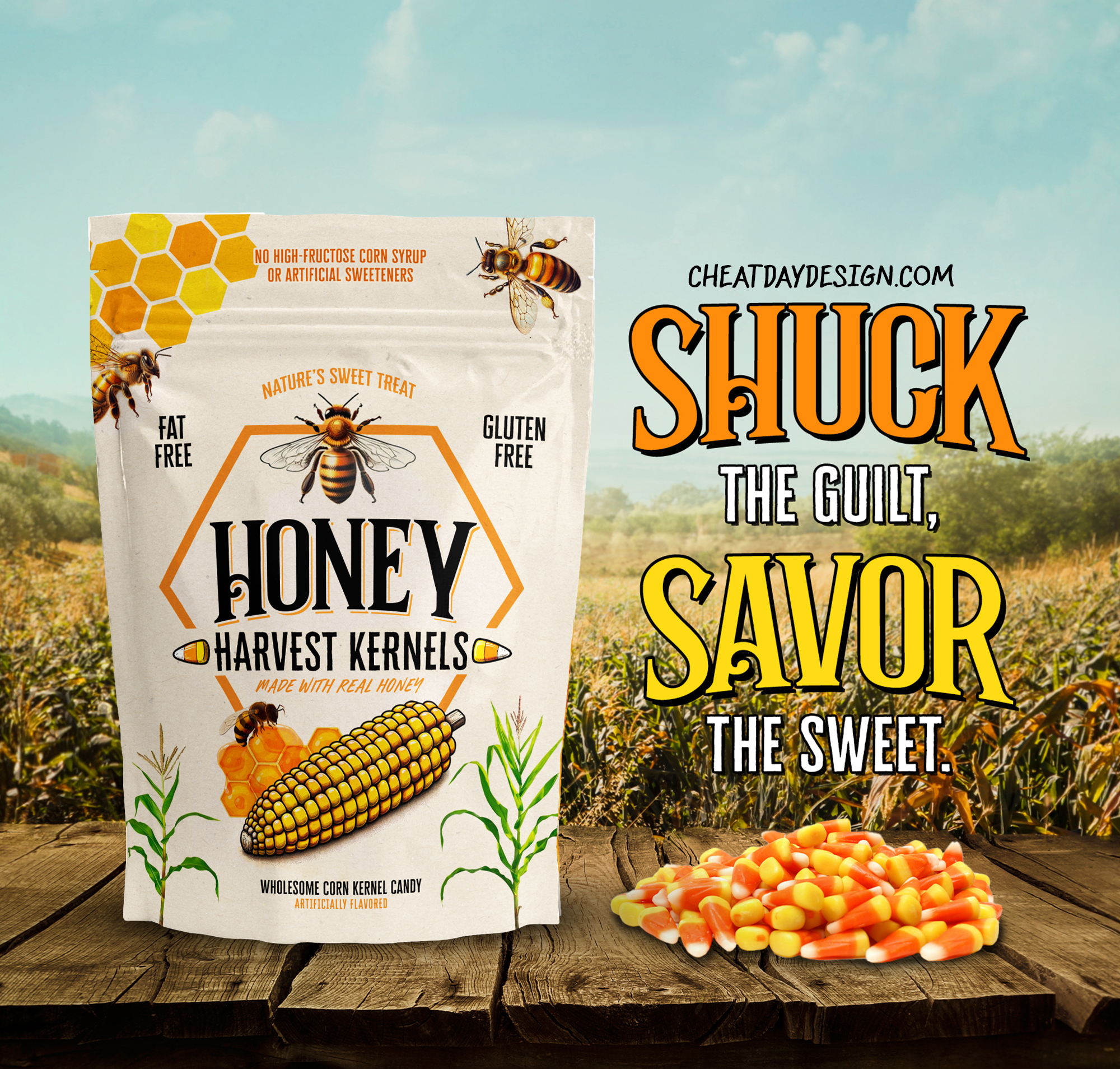 Highlighted the honey connection with “nature’s sweet treat.” Honey really is nature’s sweet treat. The tagline doesn’t claim that candy corn is natural, just plays with the association.