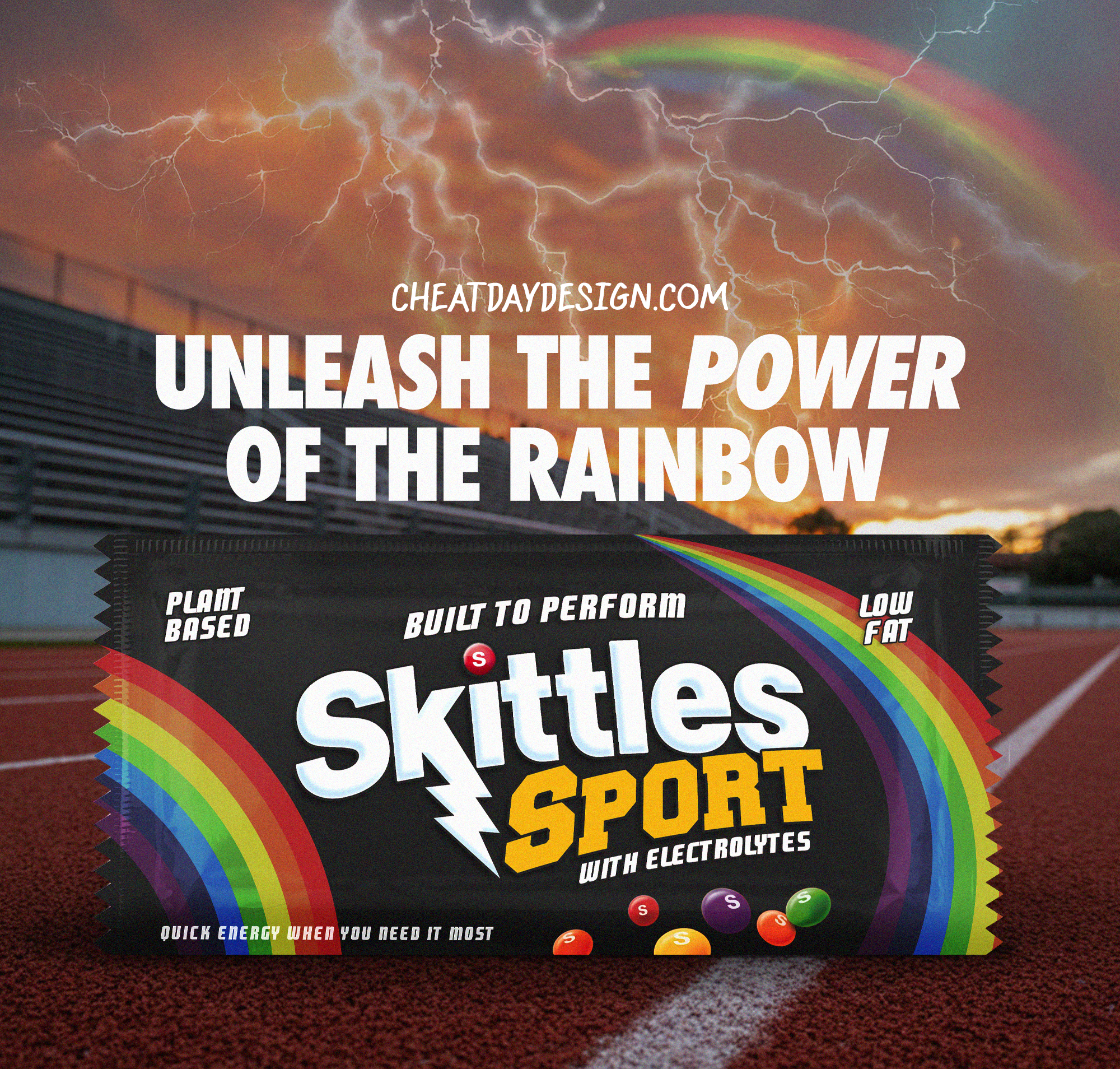 Added a lightning bolt to the Skittles logo. Regular Skittles just aren’t energetic enough. The lightning bolt screams “power” and “speed” without saying anything specific, giving us some Gatorade vibes.