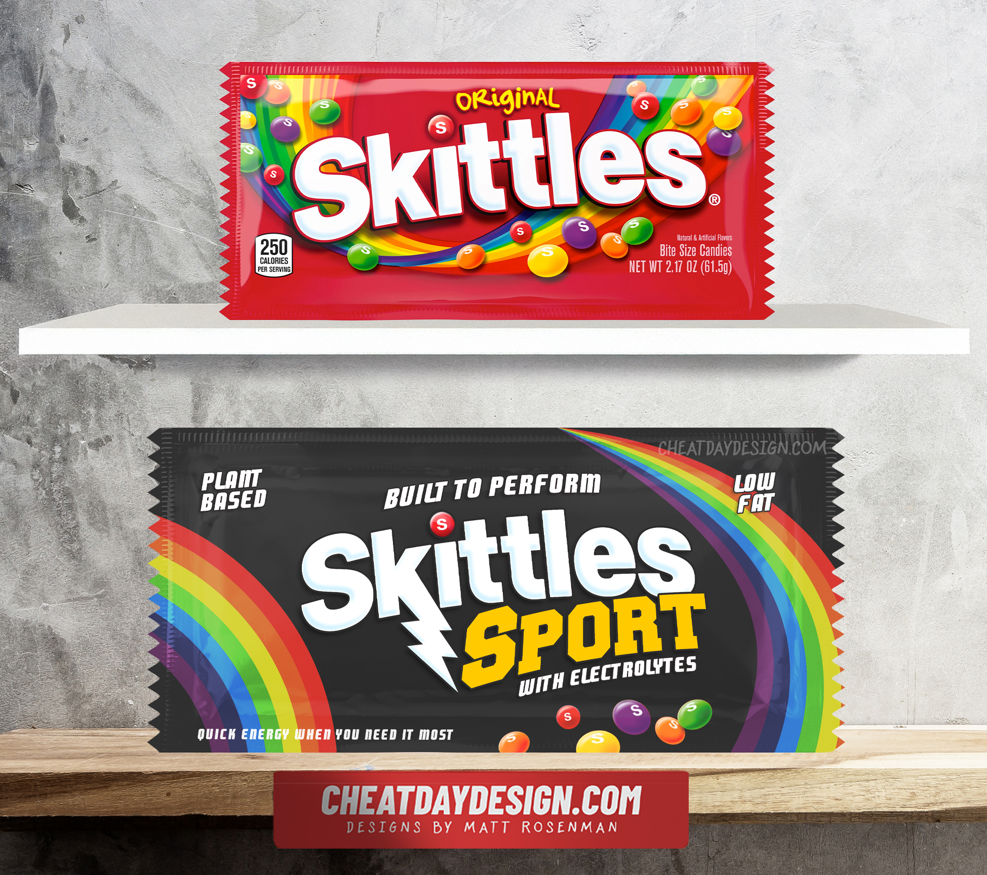 Renamed it “Skittles Sport.” Same candy, but now it’s positioned as functional fuel instead of a sugar rush. Using “sport” in the name lets the customer make assumptions about the product without any real claim.