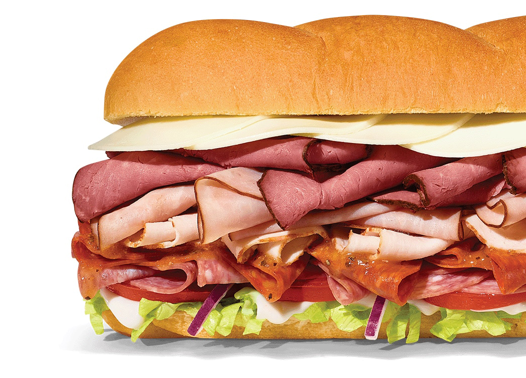 The Beast contains Pepperoni, Genoa Salami, Black Forest Ham, Roast Beef, Oven Roasted Turkey, 2X Provolone, and vegetables, which means it truly is a beast of a sandwich.