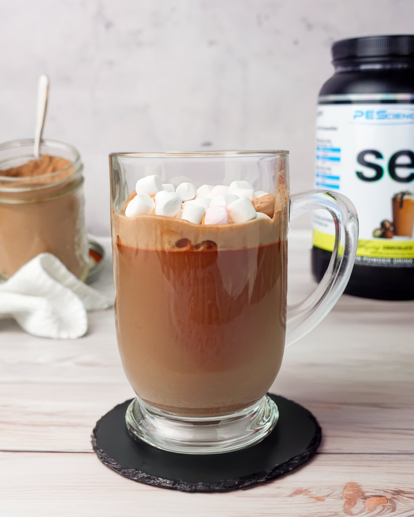 I cannot recommend PEScience’s chocolate truffle protein powder enough. When I first tried it, I immediately thought of hot chocolate, which prompted me to come up with my protein hot chocolate cookie recipe.