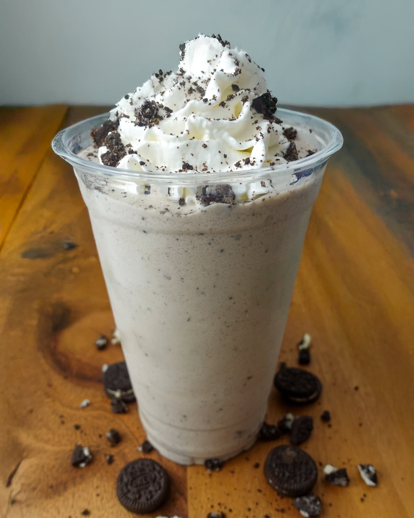 - To make a cookies & cream shake, I add 5 mini Oreo cookies to the blender, then top with a few more crushed-up Oreos. In total, it adds about 100 calories to the milkshake.