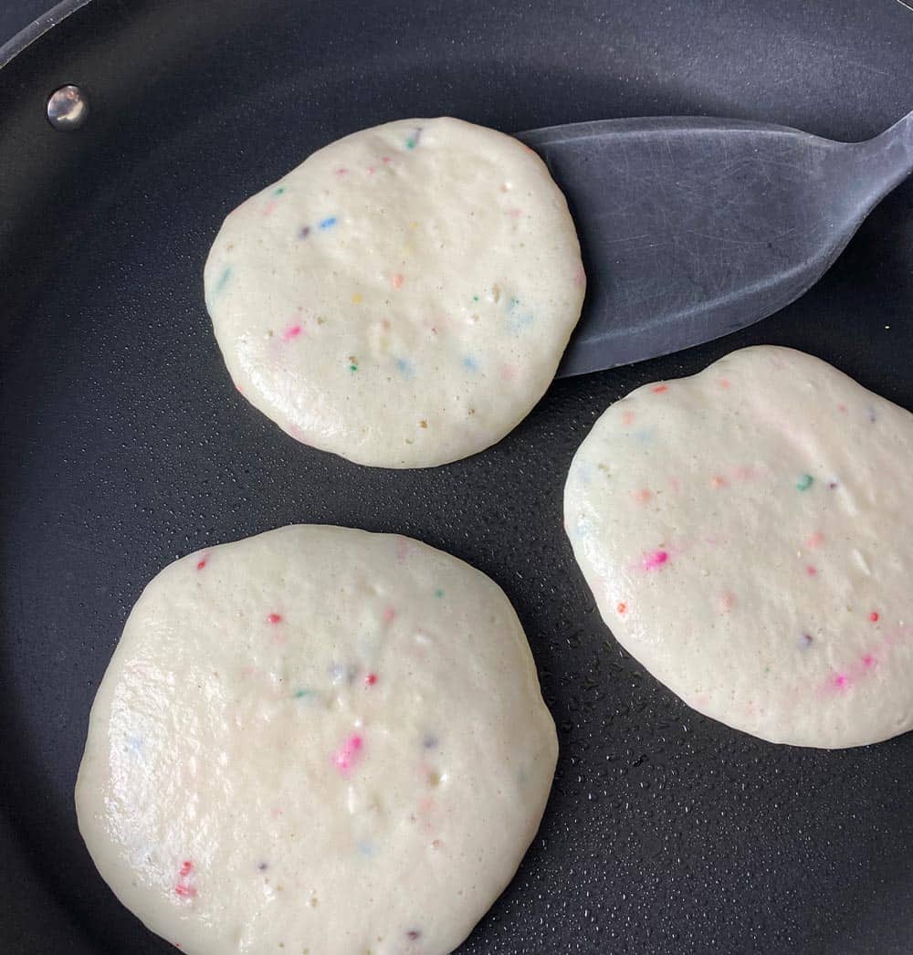 You can use any cake mix you’d like to make these pancakes, too. I find Funfetti to be superior when it comes to cakes (maybe it’s just due to nostalgia), so that’s always my choice when I’m in the mood for something fun.