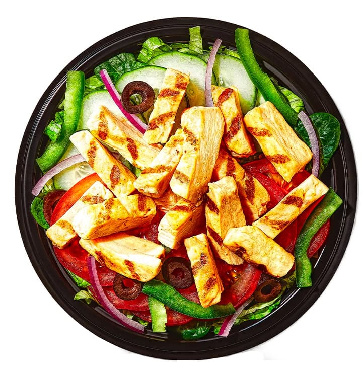 Subway’s bowls (The No Bready Bowls) are similar to salads, but they are described as everything you’d get in a footlong, served in a bowl. Because of this, the focus is on extra protein, so the calories end up being on the higher side for some of them.