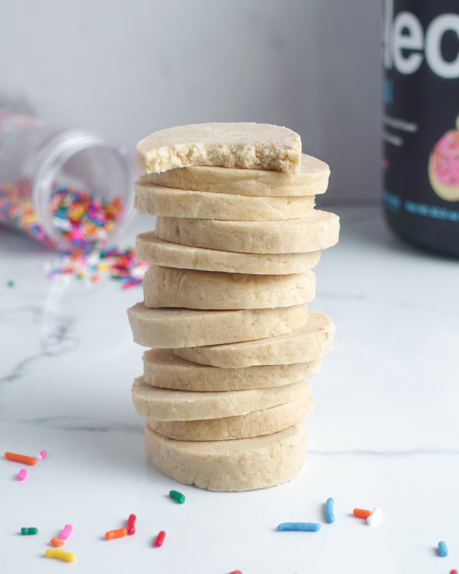 As a kid, one of my favorite treats was making pre-cut Pillsbury cookies and snacking on the raw sugar cookie dough. We're making our own version that tastes JUST like those cookies, but with a healthier twist: more protein and less sugar.