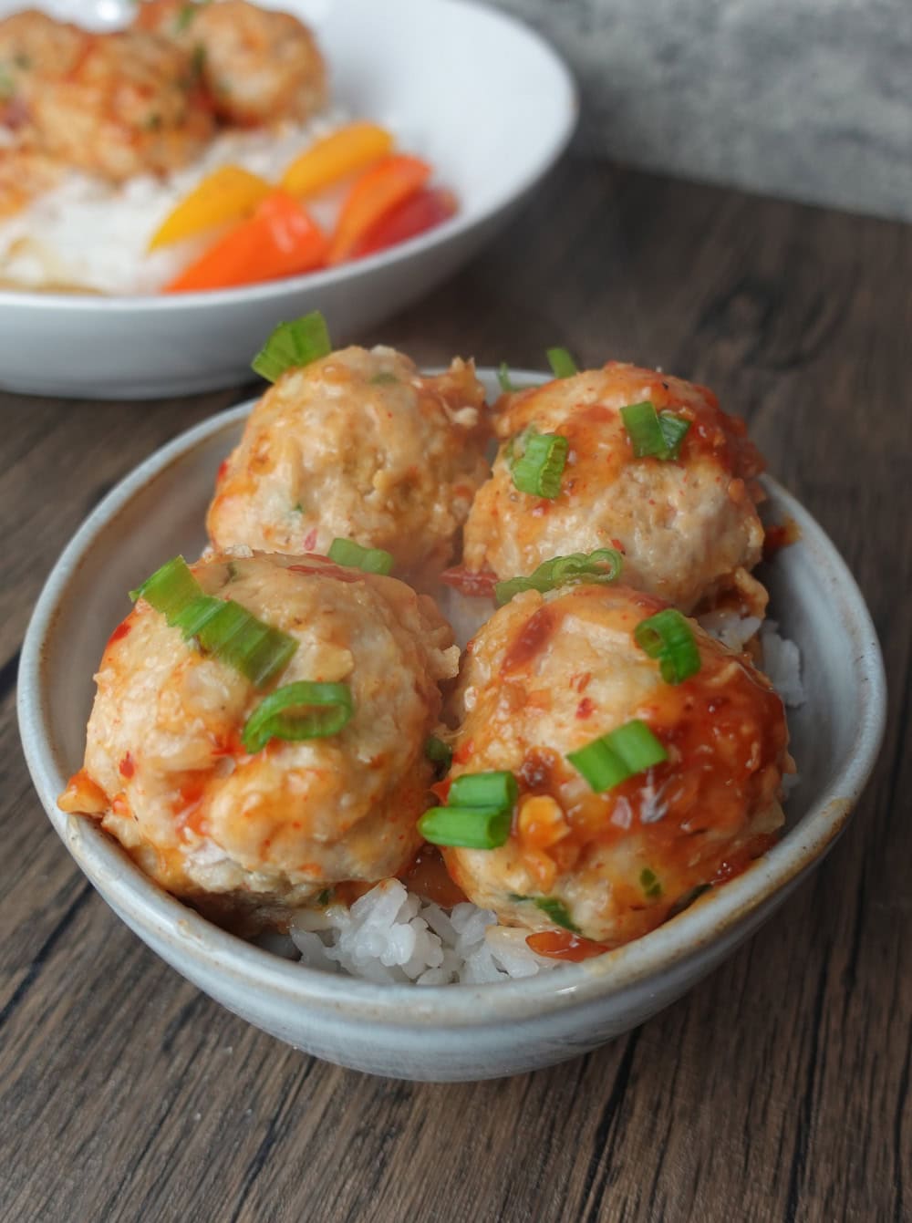 Serve these sweet chili chicken meatballs over white or brown rice and enjoy!