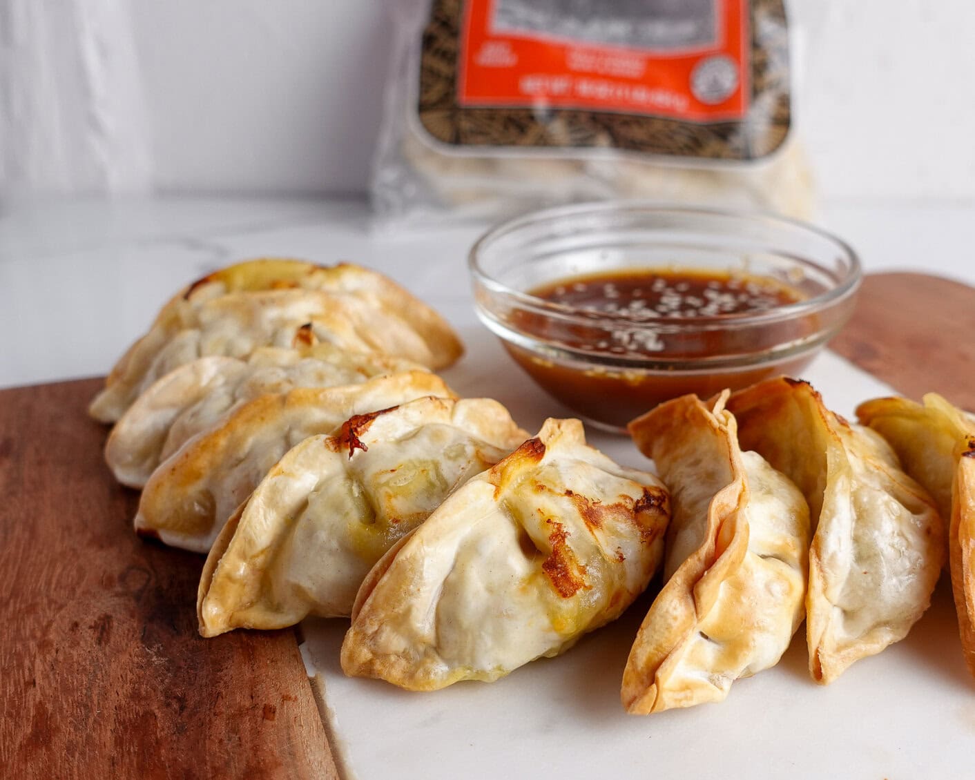 Once your Trader Joe’s gyoza are perfectly air fried, you can serve them with your favorite dipping sauce. Classic options like soy sauce or teriyaki work well, but I highly recommend trying Trader Joe’s gyoza dipping sauce.