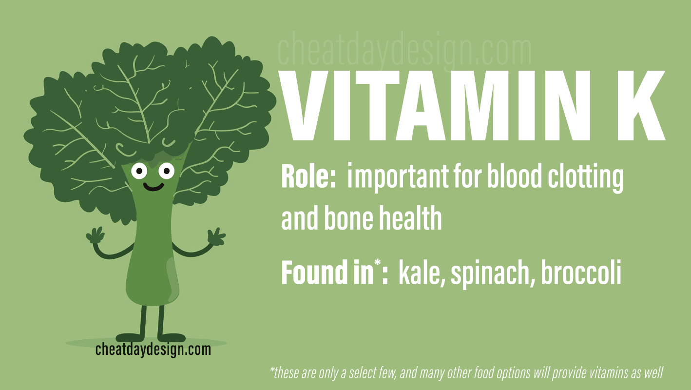 - Vitamin K: For healthy blood, specifically assisting with blood clotting