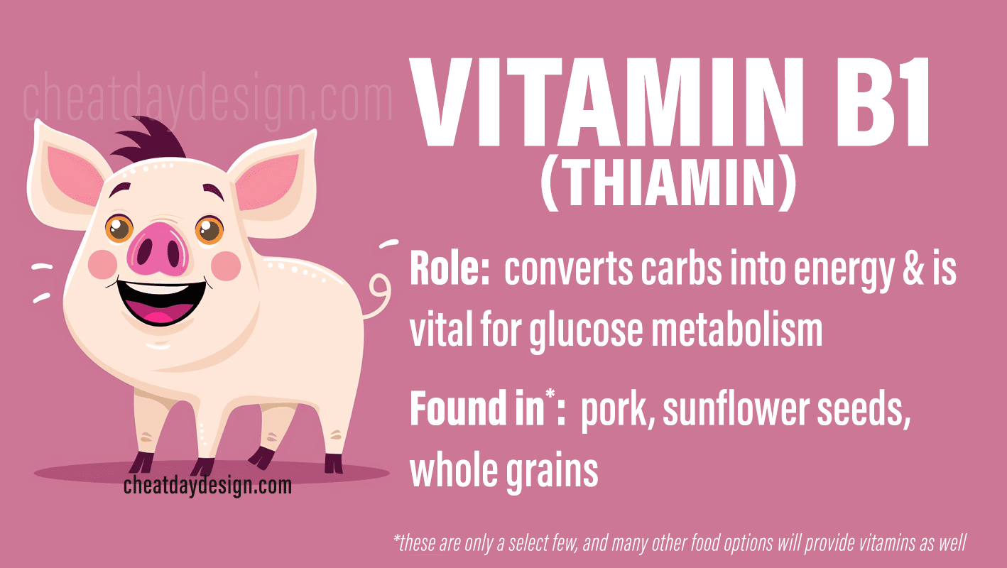 Thiamin (vitamin B1) is important for the body’s energy production. It is involved in the conversion of food into energy and helps to maintain nerve function.