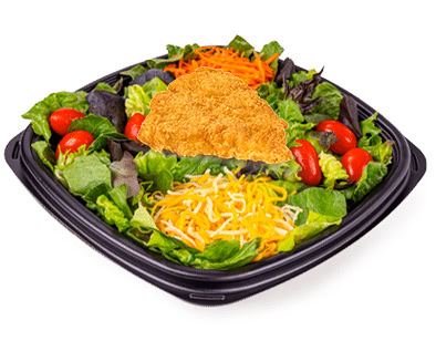 Garden Salad with Chicken Filet: 400 Calories, 20g Fat, 22g Carbs, 35g Protein