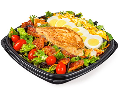 Cobb Salad With Grilled Chicken: 430 Calories, 12g Fat, 10g Carbs, 44g Protein
