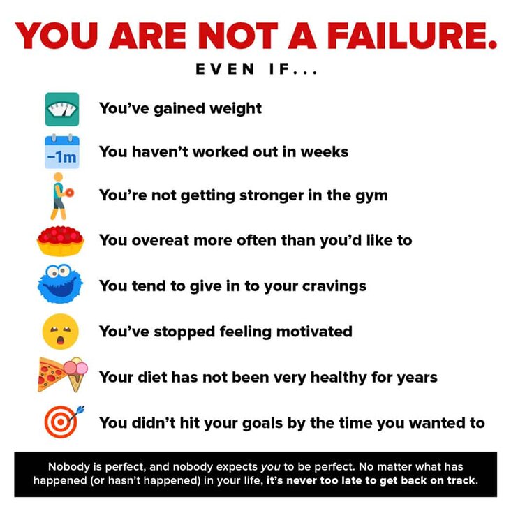 It doesn’t matter if you’ve gained 50 pounds, stopped working out for 5 years, or haven’t stuck to your New Year’s resolution. If you get back on track right now, you haven’t failed.